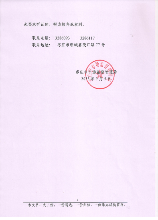 枣庄市市场监管局行政处罚告知书 枣市监信罚告字〔2023〕第1号
